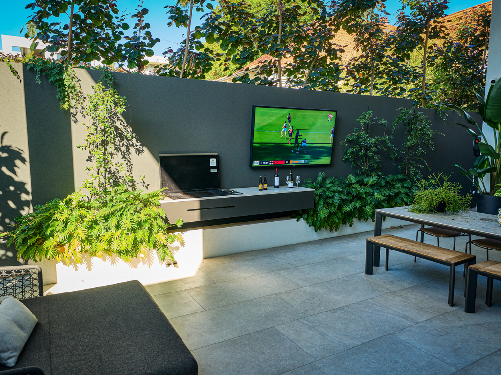 This isn’t your average screen dragged outside. It’s a high-brightness 4K QLED outdoor television, built with an anti-glare matte finish to deliver clear, vibrant visuals even in bright daylight. Whether it's mounted in the pergola or under your alfresco area, it’s purpose-built for the Aussie lifestyle.