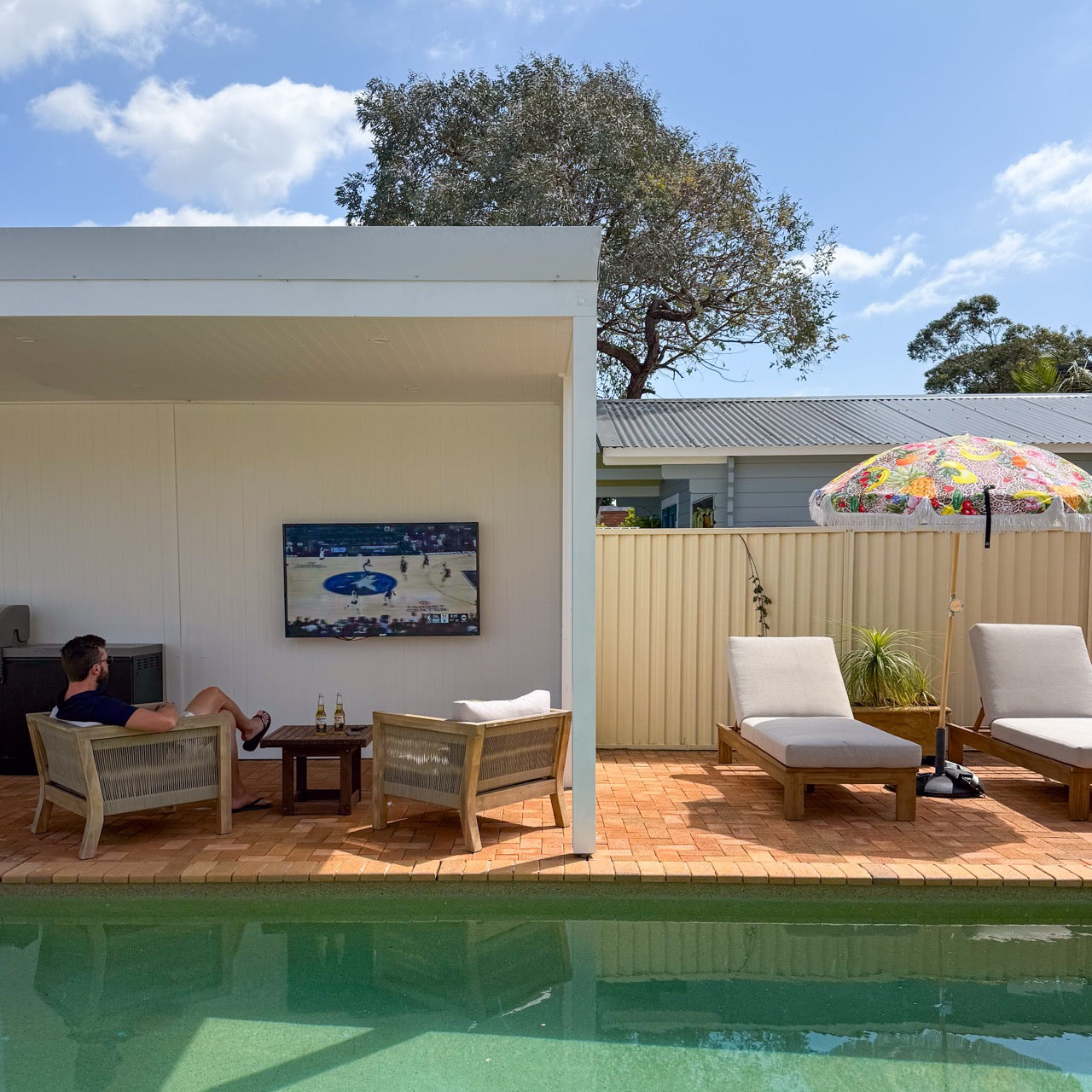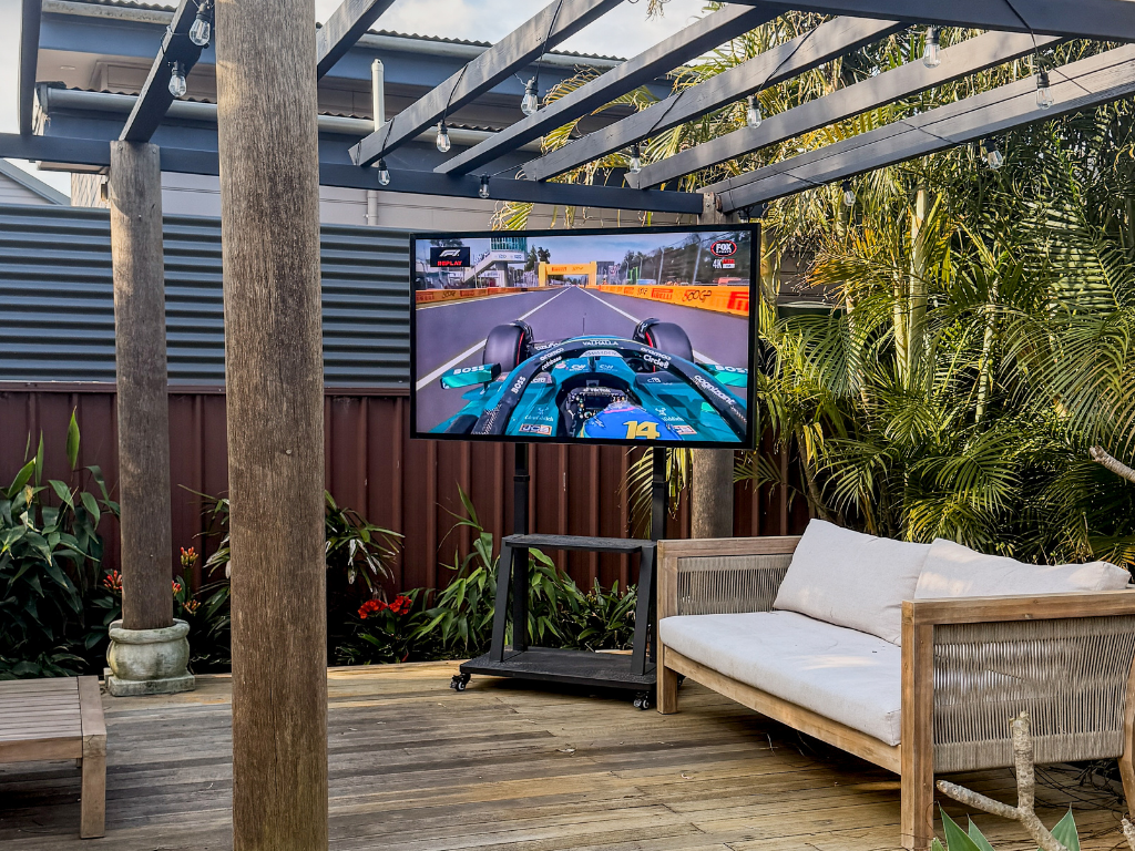 Outdoor setups where you want big screen impact without the stress of glare, overheating, or washed out colours, perfect for undercover patios, verandas, and undercover BBQ areas.